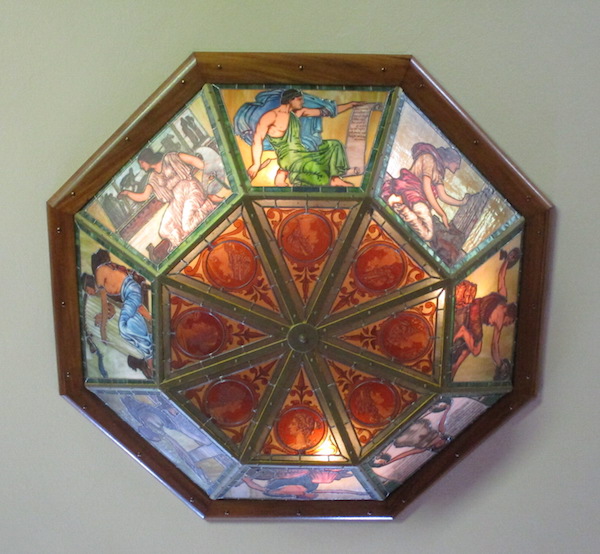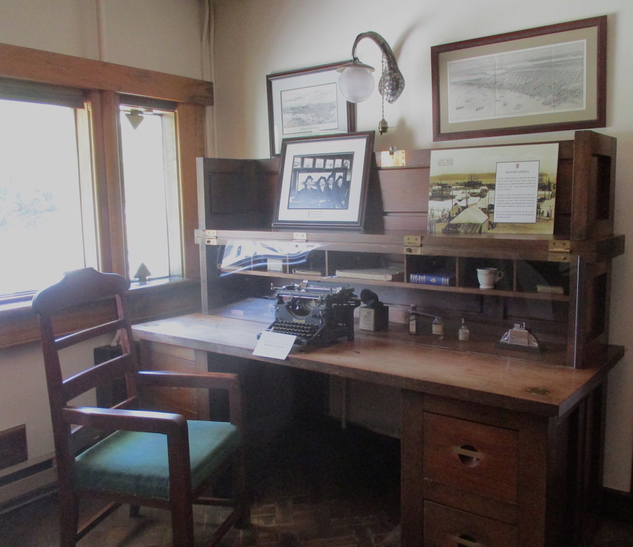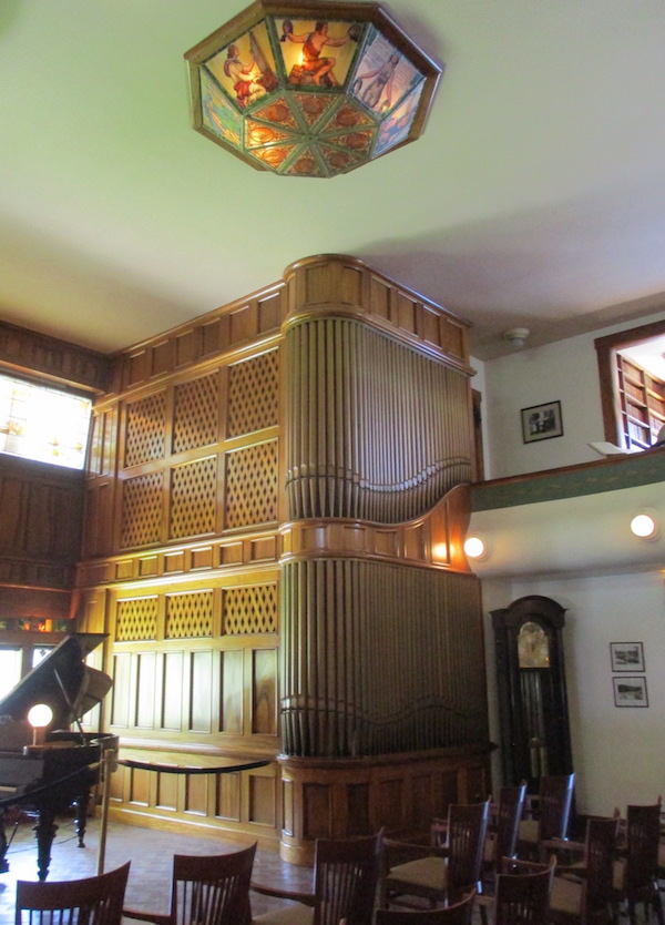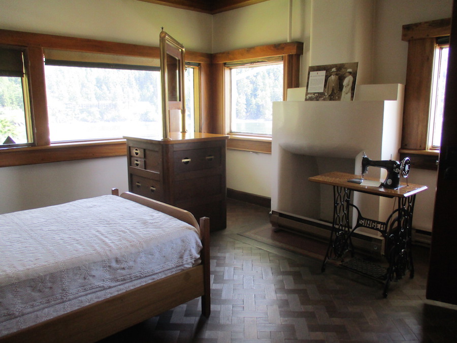 The rooms upstairs were beautiful in their simplicity, and even the bathrooms had water views. I was struck with how similar Mrs. Moran’s bedroom was to Mrs. Frank Lloyd Wright’s bedroom in Chicago, right down to the Singer sewing machine. I wonder if it’s just here for show, since there’s a sewing room elsewhere in this home…