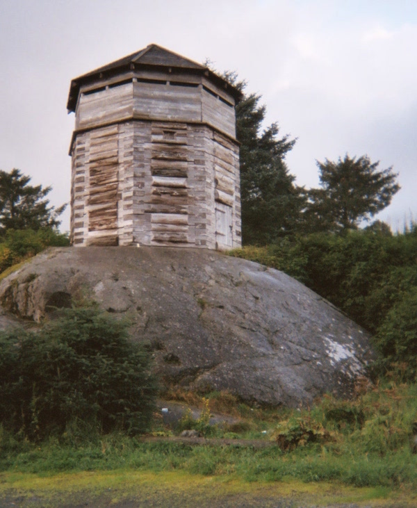 Across the street is the burial site of St. Yakov, the first Native priest ordained in Alaska. Beyond that is the Russian Blockhouse, a replica of the original which was part of the stockade that marked the boundary between the Russian and Tlingit territories. It sits atop a rock outcrop, which I come close to falling from as I circumnavigate the backside of the blockade. This day has been absolutely fraught with near disasters!