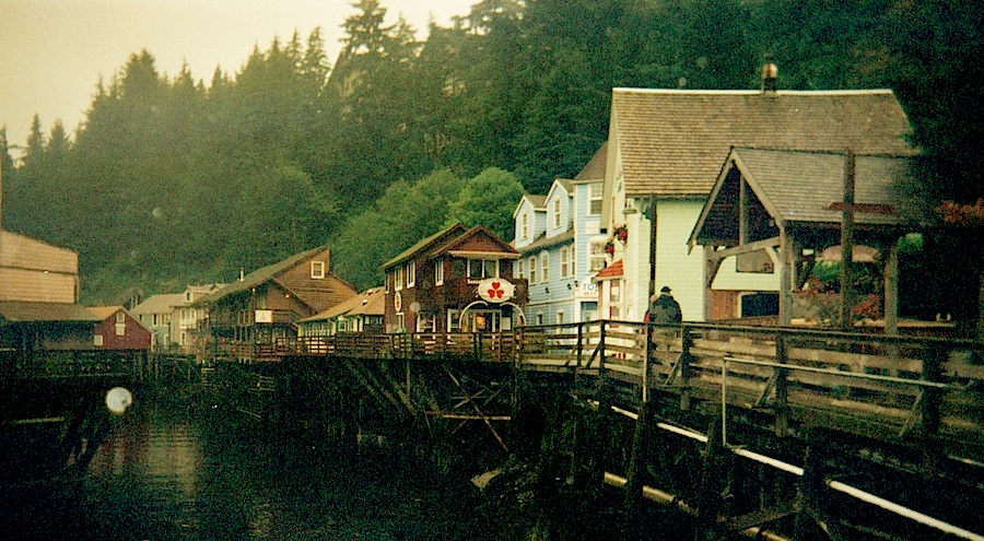 The Bus stops right at the gift shop at Saxman Village, so I hop it back to town and hop off again for lunch at the New York. The restaurant is now the Ketchikan Coffee Company. I order a salmon sandwich, which turns out to be canned sockeye (the next to lowest grade of fish).
