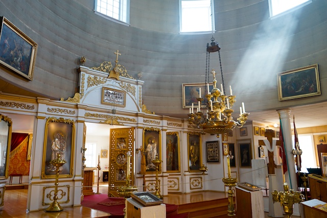 Services are held at least 3 times a week for a parish of 50+ people. The Orthodox faithful believe the Church is the place where heaven and earth unite and intermingle, so there are no pews, although there are a few benches along the walls for those who cannot stand for a full service or wedding. This leaves a lot of open space to walk around. It’s one of the cheapest admissions ($2) and the docent was very friendly and informative.
