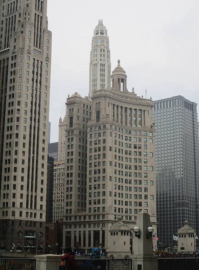 Wrigley Tower has a clock tower inspired by the bell tower in the grand cathedral in Seville. Mr. Wrigley sold soap, and included two sticks of his gum with each purchase. The soap bombed but everyone loved the gum, and so his empire was born. This tower was built n 1921 by the architectural firm of Graham, Anderson, Probst & White. It was built from limestone faced with glazed terra cotta, which sheds dirt in the rain; a material that would become the model for modern bathroom tile.