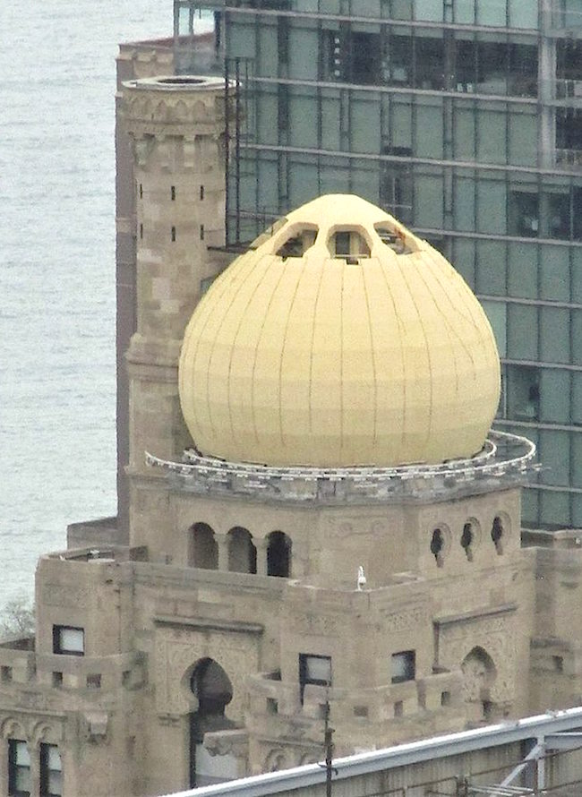 An onion dome marks the Medina Club, built by the Shriners in 1928. It houses a Moroccan room and the pool where Johnny Weissmuller trained for his role as Tarzan during the 1930’s. The tower on the roof is a docking tower for a dirigible, but the crash of the Hindenburg shortly after this was built, ended airship travel in the US. (This building at 505 North Michigan now houses a hotel.)