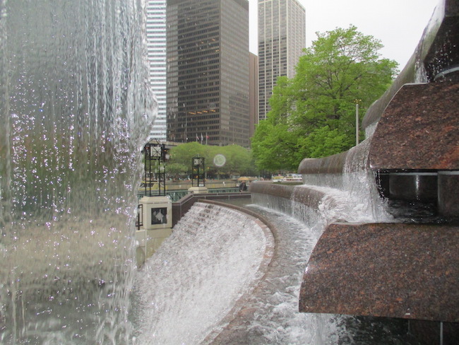 Our tour ends near the Centennial Fountain, commemorating the successful reversal of the Chicago River towards St. Louis – an engineering feat intended to prevent the river from polluting Lake Michigan, which supplied Chicago’s drinking water. Water-borne illnesses killed some 90,000 Chicagoans prior to the 1893 World Expo, and the city wanted to resolve that before inviting the world to the city. I noted that the water here is green, like Venice.