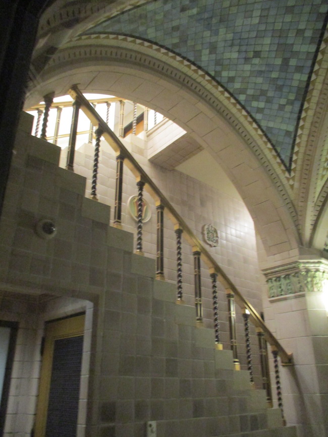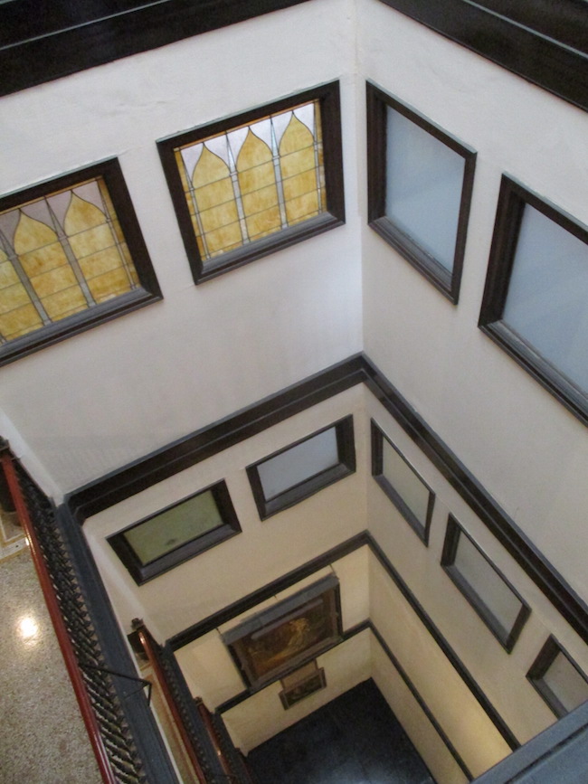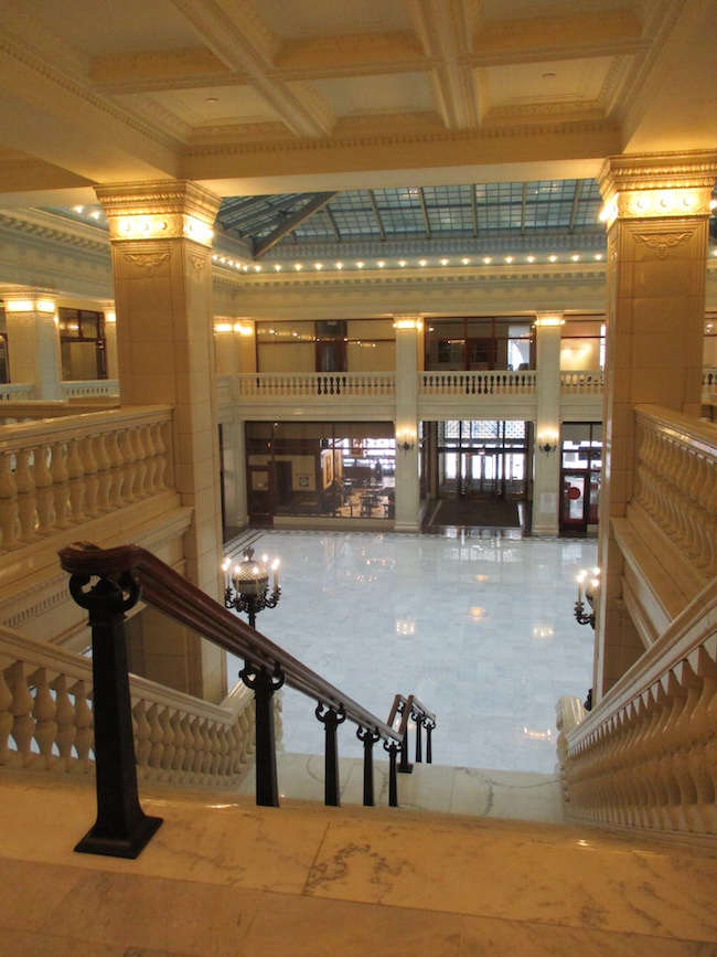 After a leisurely morning of breakfast in bed and news on the telly, I set out for the 1926 Building, also known as the Fine Arts Building. It was built in 1895 as a showroom and repair shop for Studebaker carriages. It still has a human elevator operator, who took me up to the top floor of the 10 story building. I was surprised at the absence of a grate between me and the glass elevator doors, which gave me an unimpeded view of every floor as the elevator went up. (I had a similar experience at the Smith Tower in Seattle).