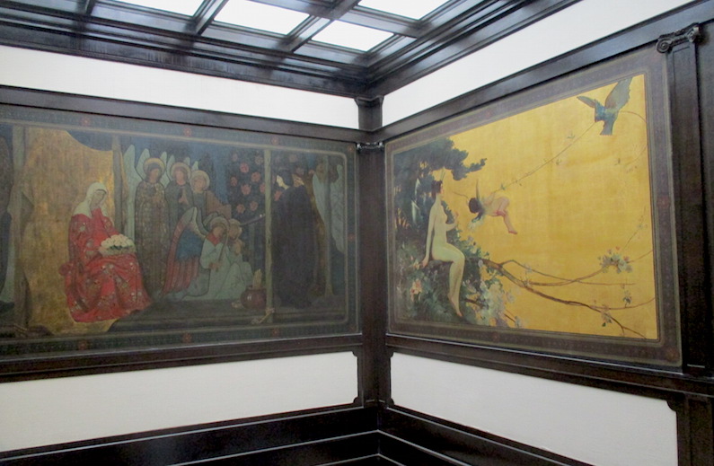 I find the Textile Gallery closed (there’s always something I want to see that is closed). The Decorative Arts gallery has an interesting collection of furniture including an office desk and chair designed by Frank Lloyd Wright. I later found out that he also designed bric-a-brac for his homes, and even some of the gowns his wife wore.