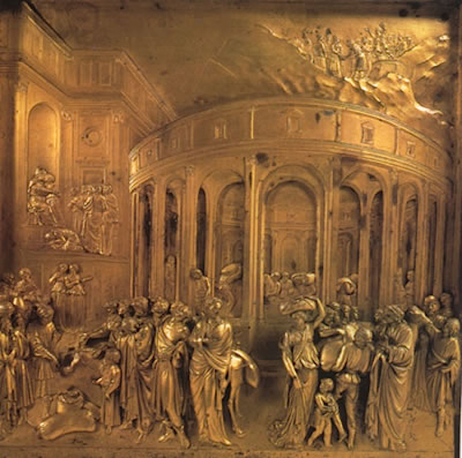 The Guild awarded Ghiberti a commission for a second set of doors the following year. But this second set of doors would be a dramatic departure from the first. Ghiberti’s new work would include 10 panels depicting scenes from the Old Testament in high relief and forced perspective.