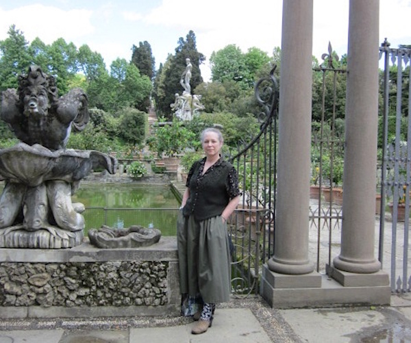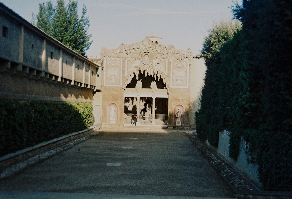 I’m disappointed to find the Island Fountain (Vasca dell’Isola) is locked. There are a number of tourists, and several of us spot a heron perched on the edge of the fountain on that island. I never find the Perseus on Horseback that is supposed to be partially submerged here, and wonder if it has been moved. I ask a fellow tourist to take my photo next to the sandstone columns that support the locked iron gates which block our path to the garden. They are topped with marble Capricorns, symbolizing Cosimo Medici. The lemon trees are full of fruit.