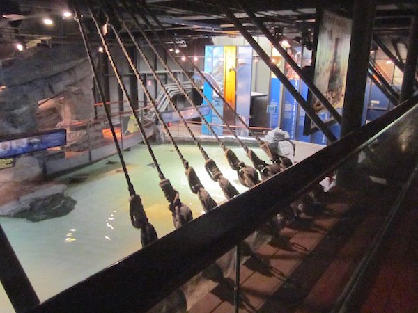 The penguin tank is a scream, as you will see in this short video clip. The tank replicates the environment of the Falkland Islands and is inhabited by both Gentoo penguins from the Antarctic, and Magellanics from the coast of Chile and Argentina. They buzzed the glass constantly and were very interactive with us.