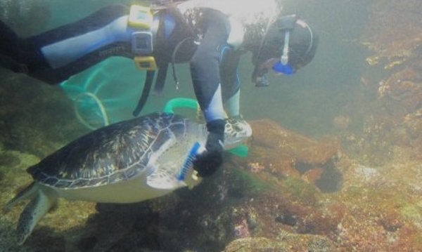 I also watch a diver cleaning the tropical lagoon, where Cuba, a playful sea turtle, keeps coming up to ‘kiss’ the diver’s face mask and rub along the entire length of his body. Cuba is a rescued turtle who was left in a box at the aquarium in 2000, with a note that gave a birth date of August 1996, and that she had come from Cuba. Another rescued sea turtle is also here. Ari was smuggled into Italy by a tourist from the Maldives and later abandoned, and then adopted by the Aquarium.