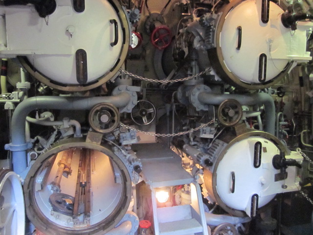 After signing a release and checking my bags into a locker, I put on the hair net and hardhat I was handed, and board a reproduction of the N. Sauro, Italy’s largest submarine. I missed the pre-show which would have taught me how to use the periscope and hydrophone.