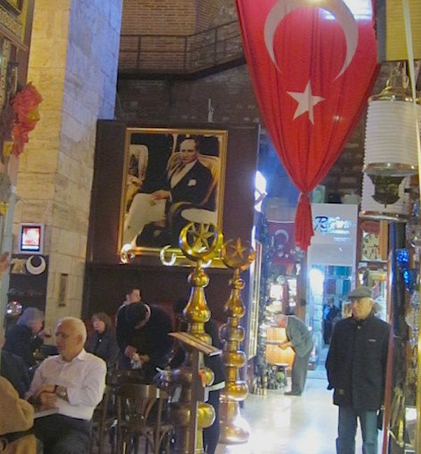 Where I ate lunch. A portrait of Ataturk hangs on the wall