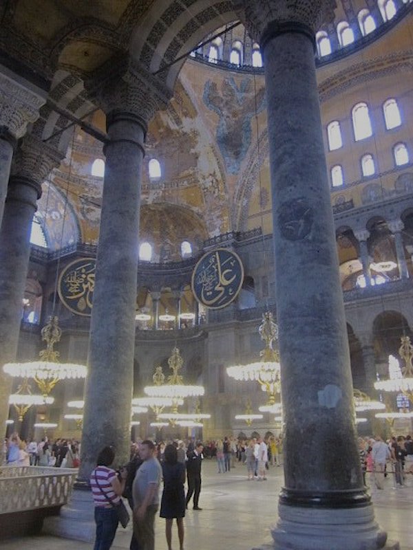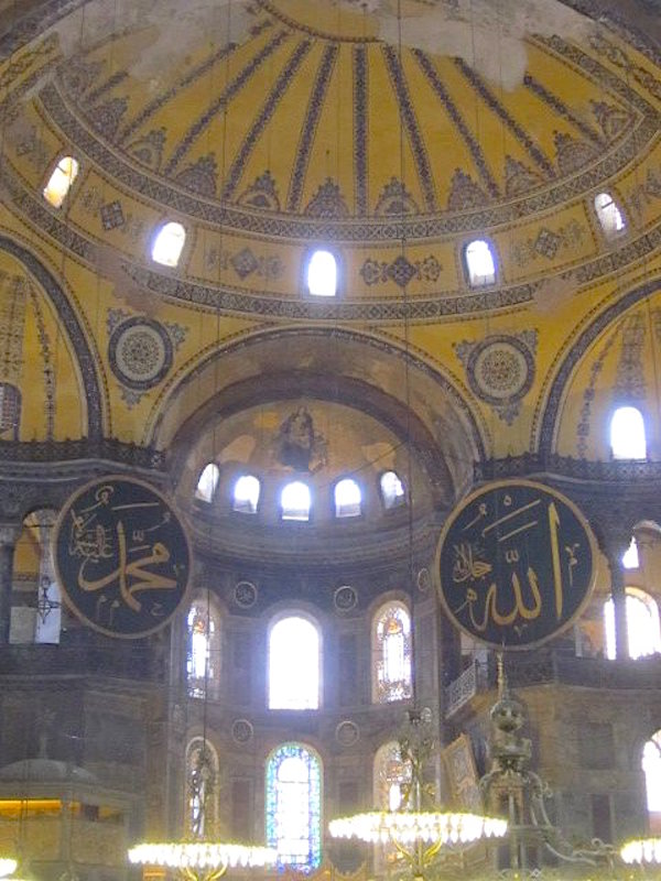 Baha told me that much of the glass in the Ayasofya (and I believe also the Blue Mosque) is recycled, though he did not detail the source. The photo at lower right shows windows behind a Christian-made mosaic of the Virgin and Child dating to the 9th century. I try to do the building justice with my camera but the light is wrong and I cannot capture the depth of the details. I resort to drinking as much in with my eyes as I can.