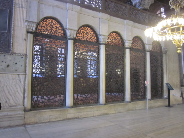 The dome (above) would inspire one of the hats I would create upon my return home. Below, the stunning minbar (the imam’s pulpit) dates to the late 16th century and is one of the most beautiful I saw in any mosque in Istanbul. Similar fretwork was repeated in some of the upper galleries where I presume the women or perhaps the royal family prayed.