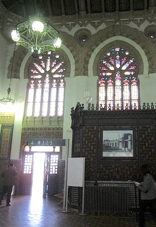 It’s pouring rain when I arrive at the the Toledo train station, built in the Neo-Moorish style in 1919-20. With its stained glass windows, intense woodwork and brick-and-tile floor, it would be the most beautiful train station I would see on this trip.