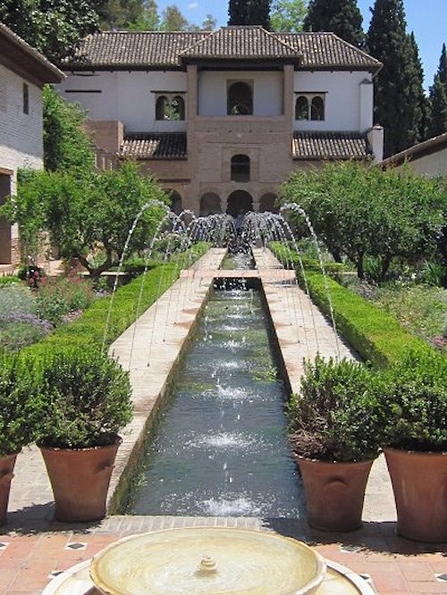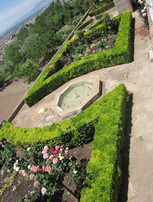The Generalife (āGarden of the Architectā) reflects the Muslim concept of garden as it is referenced in the Koran and to reproduce paradise on earth. Dating back to at least the 13th century, it originally included orchards, farmland, and animal pens. Its gardens are planted with citrus, jujube, pomegranate and grapes, cypress, laurel, jasmine, and roses which are very fragrant. It is also built on several levels to adapt to the landscape.