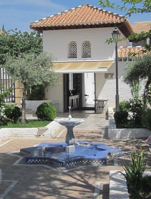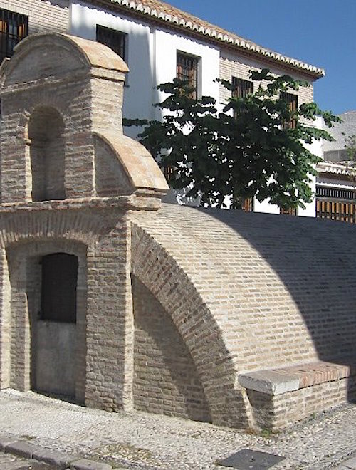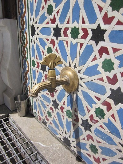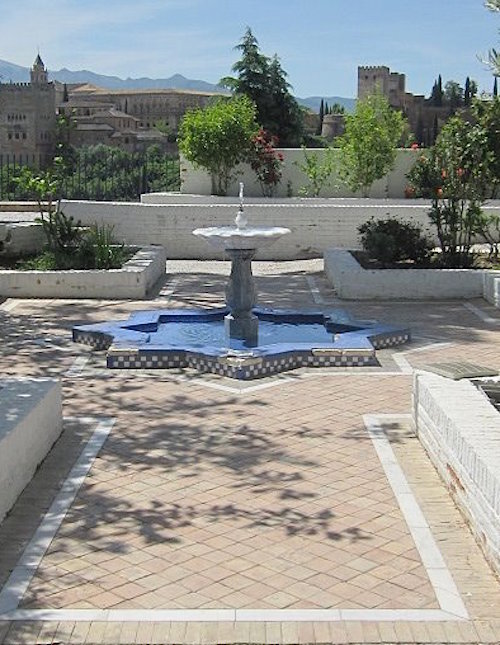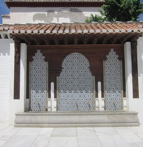 I find the Great Mosque but cannot enter. Built in 2003, it’s a modern, compact building with a tiled three-station ablution area. There’s a fountain in the courtyard and a great view of the Alhambra and the Sierra Nevada mountains in the distance. The view must be spectacular at night.