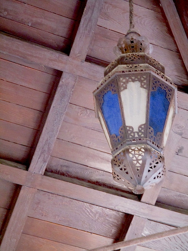 Burros start to outnumber cars. There are carts of oranges along the side of the road, nomadic fruit stands.  Doug points out 50-year old aqueducts running parallel to the roadway, delivering water to the fields. Houses are painted lavender and pink. I look out at hedges of prickly pear interspersed with low growing trees, which form a green fence between the fields and the road. The prickly pear hedges give way to eucalyptus trees further on. To the left is a sugar cane field, and to the right, pottery stands displaying piles of lanterns, pots and tagines. Craftsmen’s booths are lined up side by side for a solid two blocks.