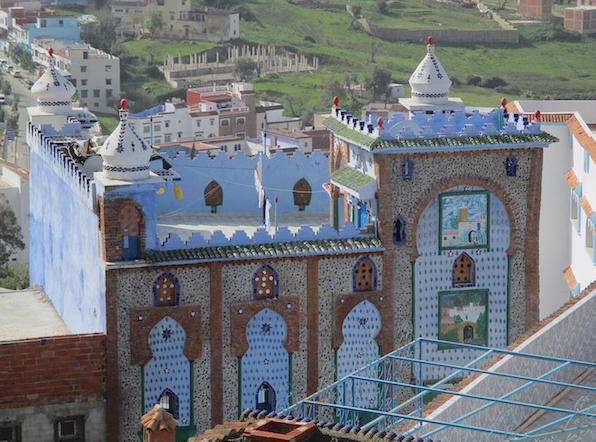 I walk around the backside of some apartment buildings, where I find a panorama view of what I think is the reconstruction of a lower fortress wall, and what may be the tomb that Abdamin spoke of. He told me there are several holy men buried in Chefchaouen, though I did not learn any of their names.