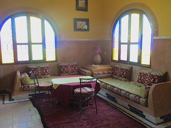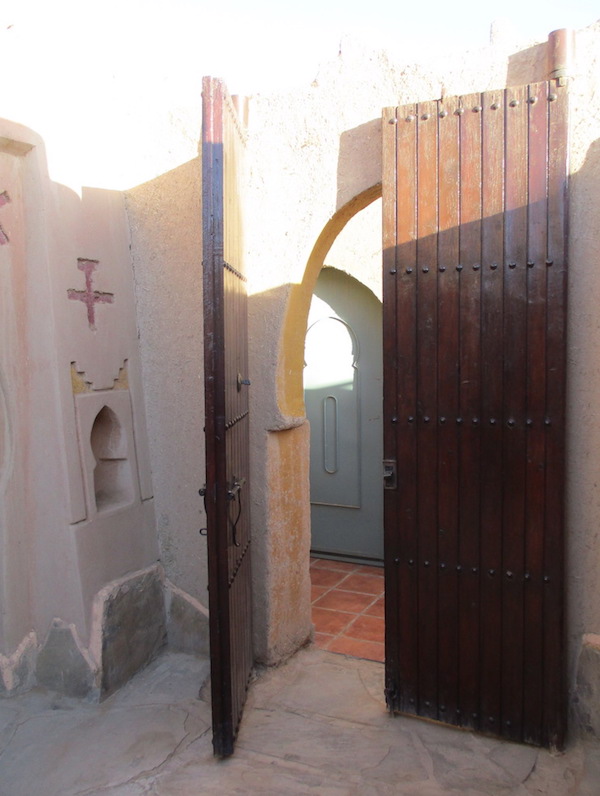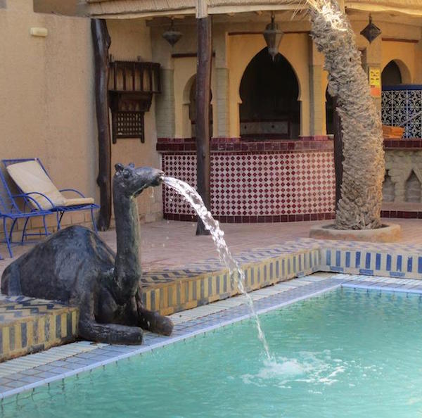 I wake early the next morning to see the sunrise and to explore this wonderful kasbah. I would tread up and down stairs, and admire a camel spitter at poolside, and photograph doors that would eventually inspire one of my hats. After wandering around the roof and the courtyard, I follow the signs for the restaurant and am the first to arrive for breakfast.