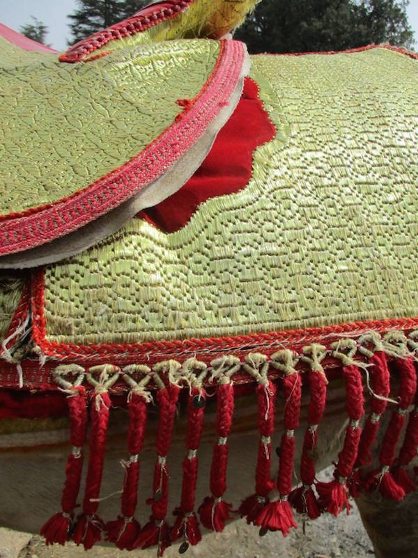 He snaps a few photos and then leads me to his horse – a beautiful white creature with an ornate saddle that is standing next to a boulder, a convenient aid for mounting. The guide again says “photo” and I climb up onto the horse. He snaps a few more shots, and then unexpectedly grabs the reins, and starts to lead the horse into the forest.