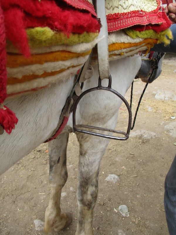 I frantically protest, but he he continues down the path towards the forest. I twist around in the saddle and start waving and yelling to try to get Doug’s attention. After several more yards of frantic thrashing and yelling, I impress upon the guide that I’m with a group and I MUST GO BACK. He slowly turns the horse around, and Doug arrives as I dismount.