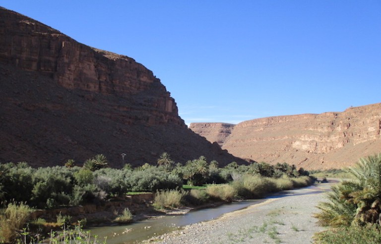 After a final fabulous breakfast in Fez, we pack the van and hit the road. It’s going to be a long day (340 miles) but there will be a lot to see. Doug says there’s snow in the mountains but the roads will probably be clear. At least he hopes they will be clear… he relates a story about his previous trip, where he made it over the pass just before the road closed. The couple in the car behind him were not so lucky, and were stranded for a week, waiting for the pass to reopen.