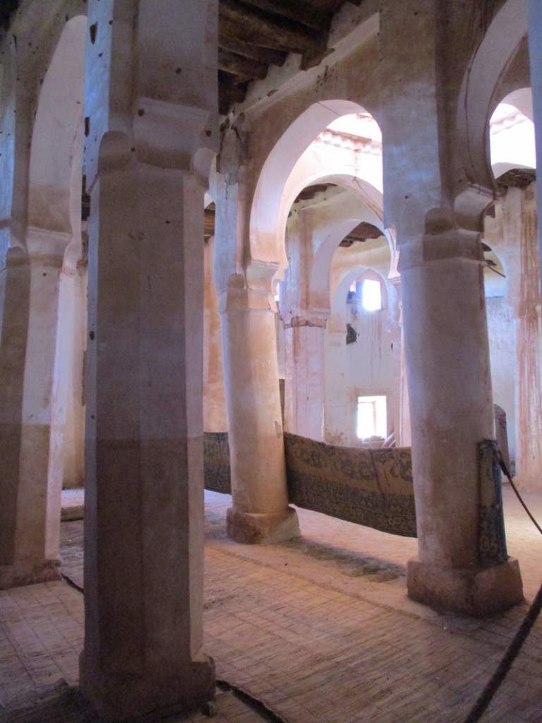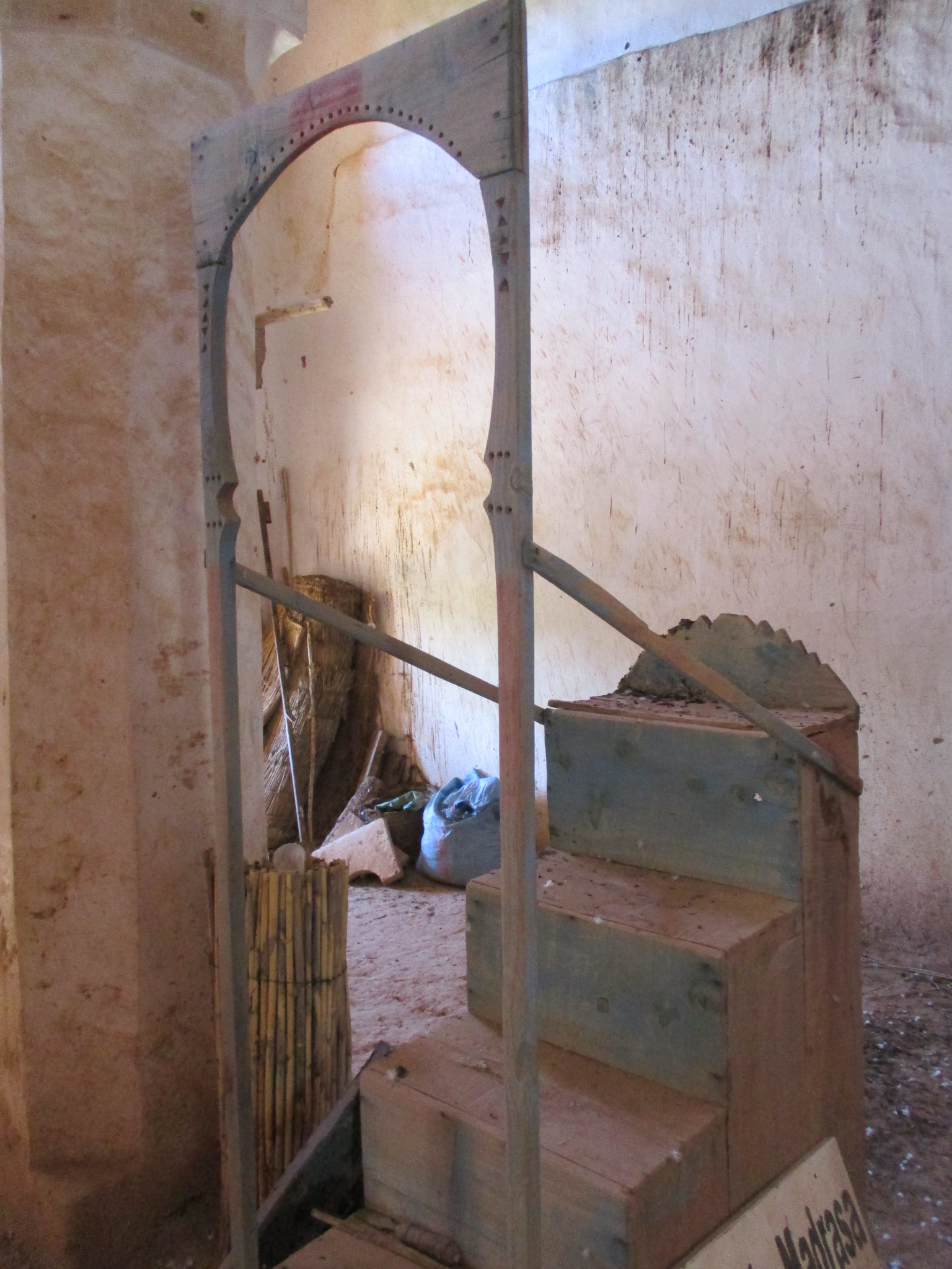 The Ikelene Mosque is a ‘historic’ and yet obscure mosque in Tingher. I cannot find any information regarding its history other than it was re-plastered in the 19th century and then destroyed in a heavy rain that wrecked many of the mud brick buildings here in 2005. Restoration work began in 2007 but was obviously still underway when we visited here. The mosque is composed of the elements you would find in most sub-Saharan mosques – an ablutions room, a prayer room with its mihrab directing towards Mecca, a terrace where calls to prayer were sung out (in lieu of a minaret), and areas for study, as this mosque also served as a medersa.