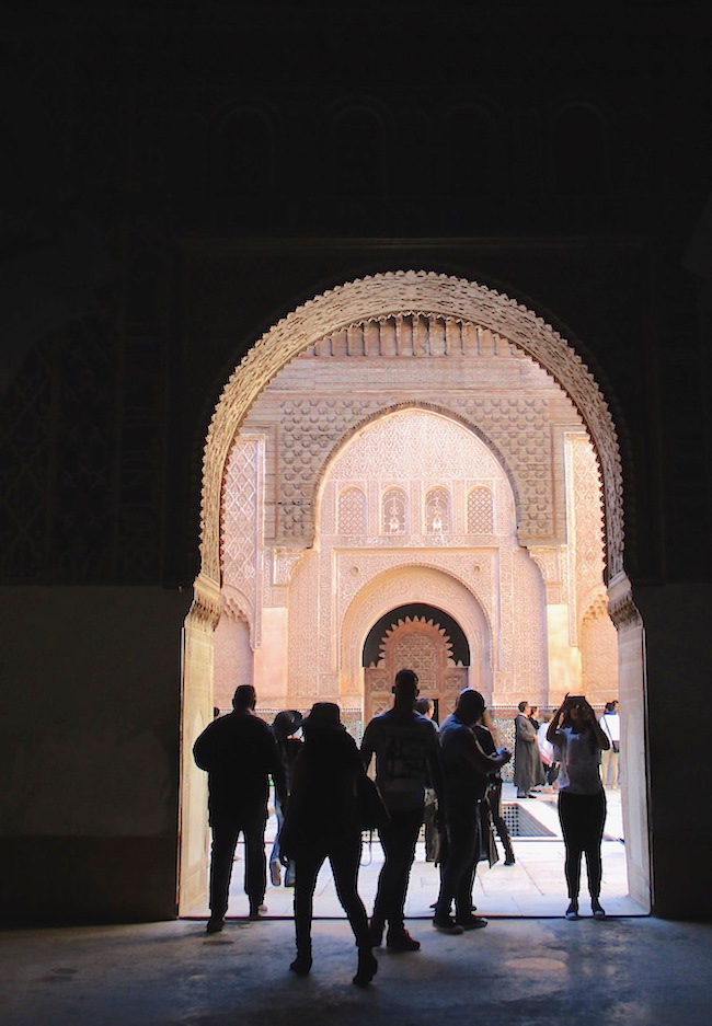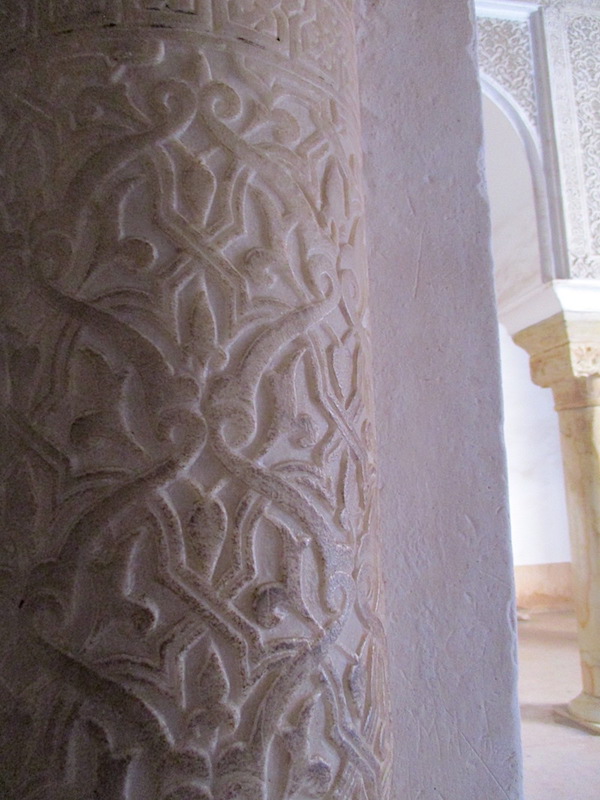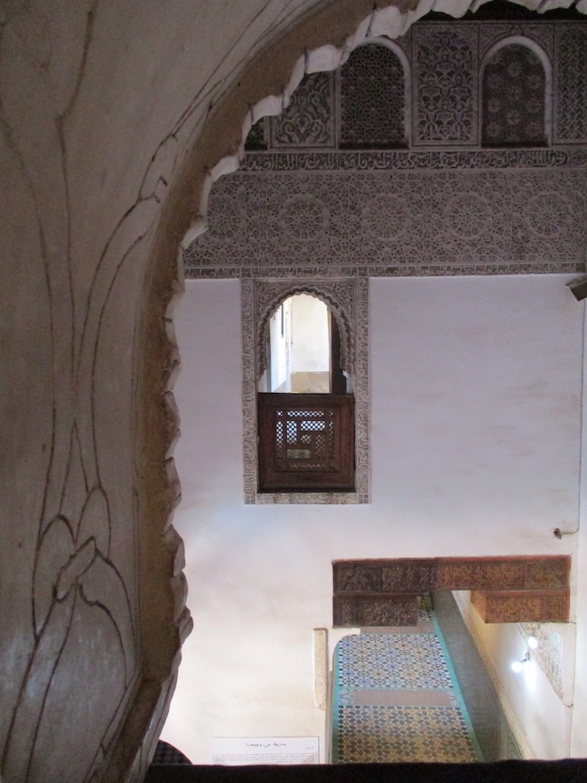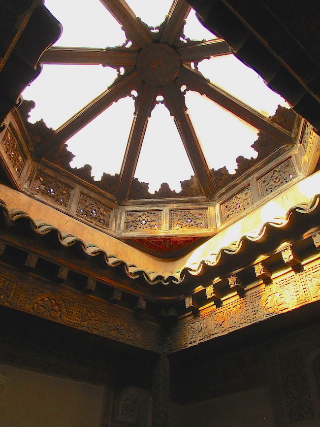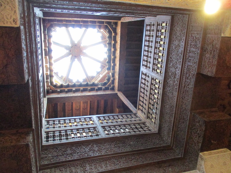 We visit the Medersa Ben Youssef, the largest school for Koranic study in Morocco when it was built in the 14th century.  It’s most outstanding features are its carved cedar and plaster ceilings and glass dome.