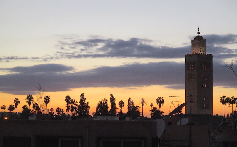 We end our day with dinner at the Restaurant Riad Omar, overlooking the square and affording a wonderful sunset view of the Koutoubia Mosque from their outdoor terrace.