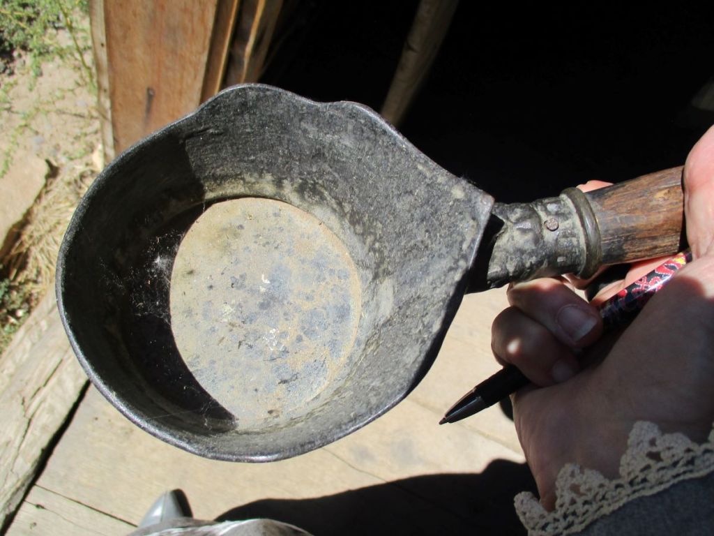 In the Chinese laundry, the docent picked up a small pot, and told us it was an iron – the “pot” was filled with coal, and the brass bottom was burnished after years of smoothing wrinkles from sheets, shirts and dresses. I asked if I could get a photo of it, and was very surprised when he handed it to me. It was heavily ornamented iron with a short wooden handle and a brass bottom. I think it would have required skill and strong wrists to use.