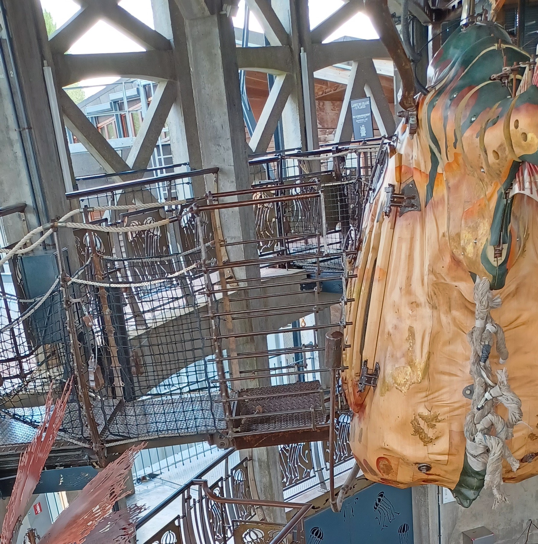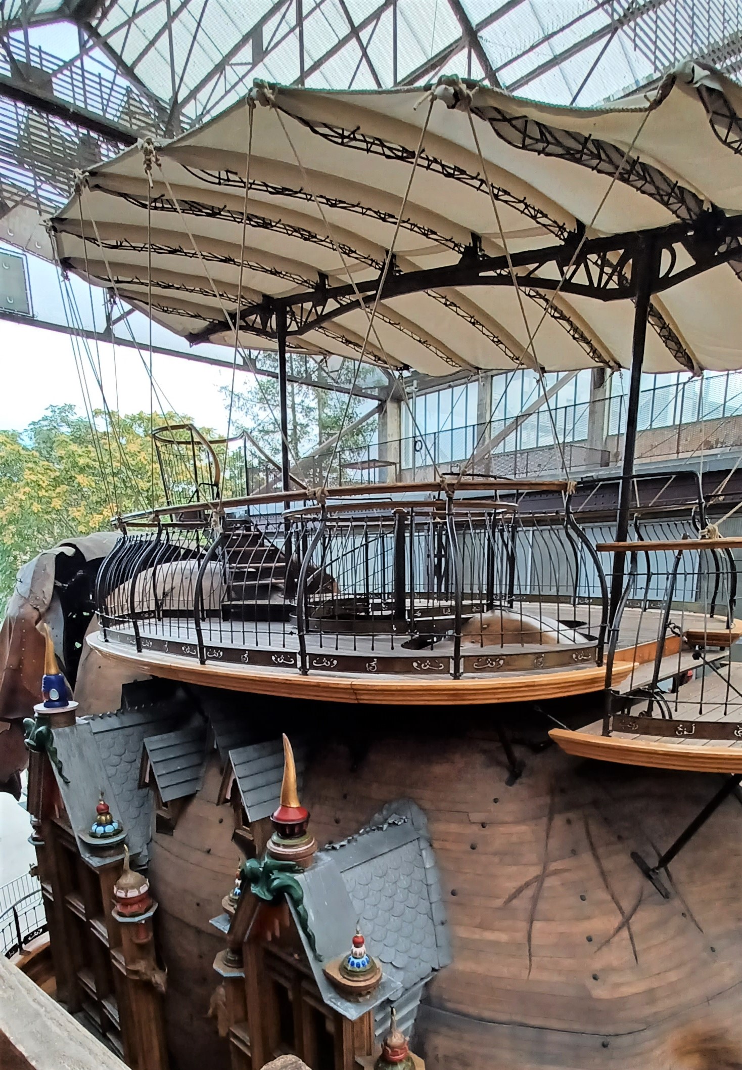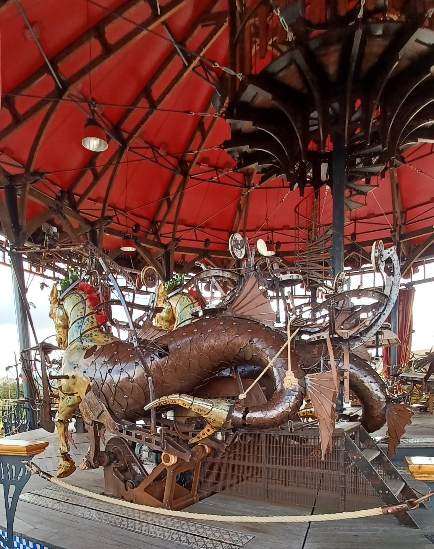 When it’s time to enter the gallery, I’m mildly disappointed at not being able to ride any of the animals even though I see others who have been given that opportunity. But it’s a really fascinating place. I would learn a few days from now that Les Machines is a three-part project covering nearly two decades of planning and funding. The Grand Elephant was the first piece of the plan, the Carousel was the second, and the third, currently in progress, is the Grand Heron Tree. The mechanical elements are built in the factory on the right side of the complex, and displayed in the Gallery on the left before moving to their permanent home in either the Carrousel or the Heron Tree.