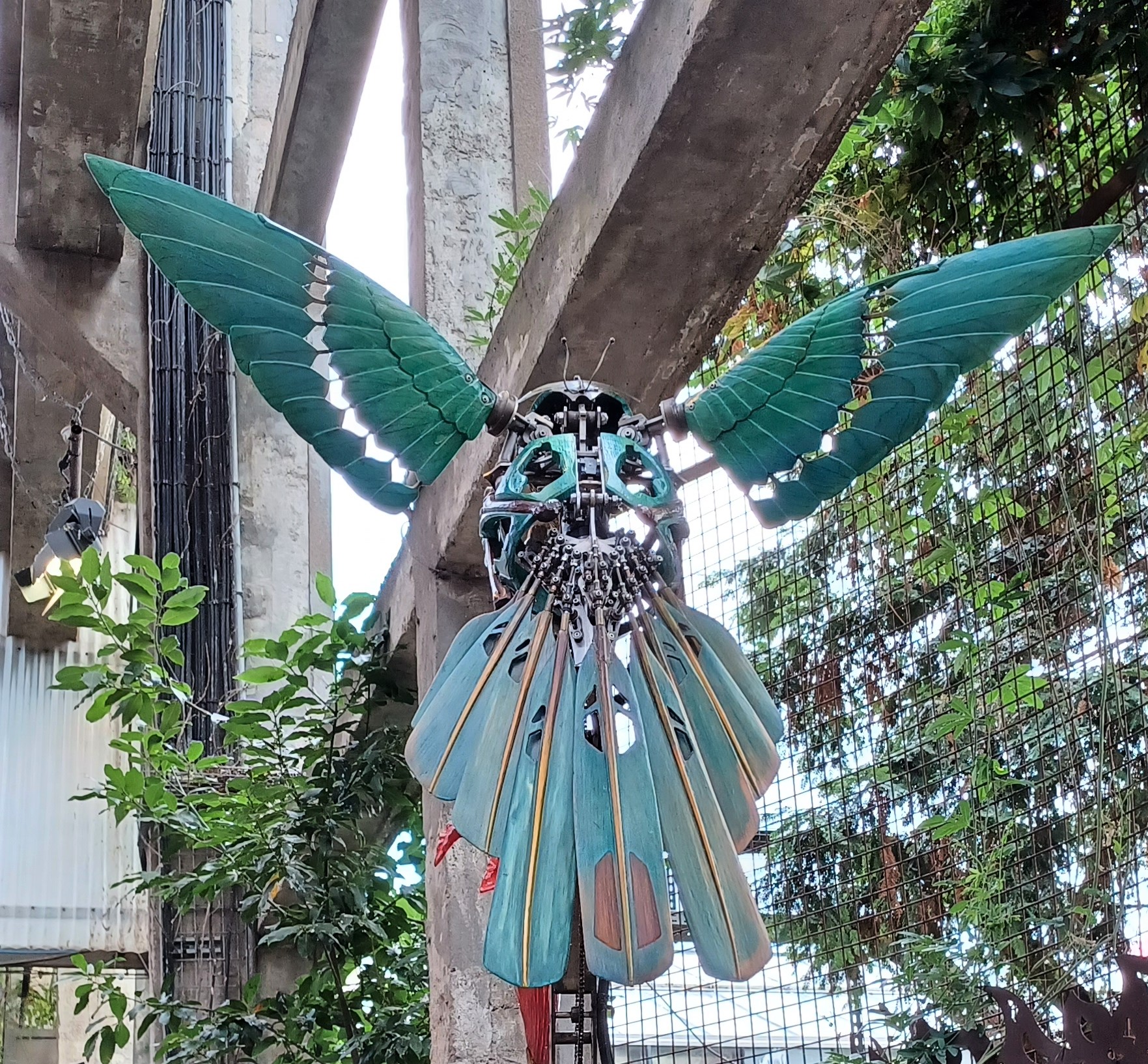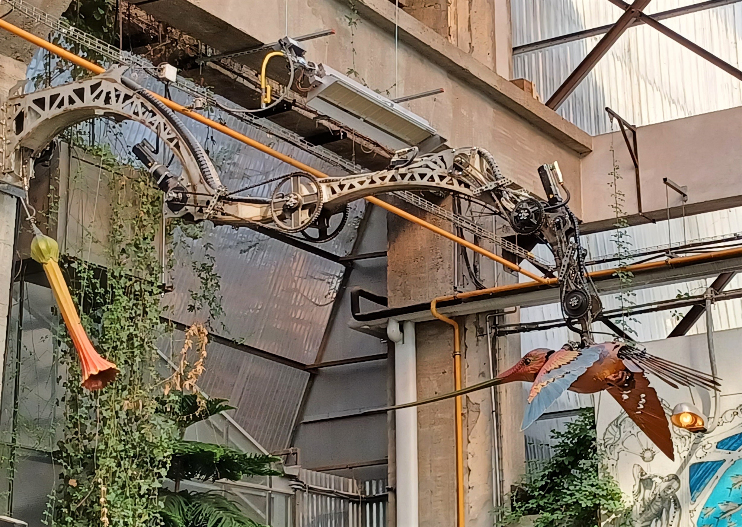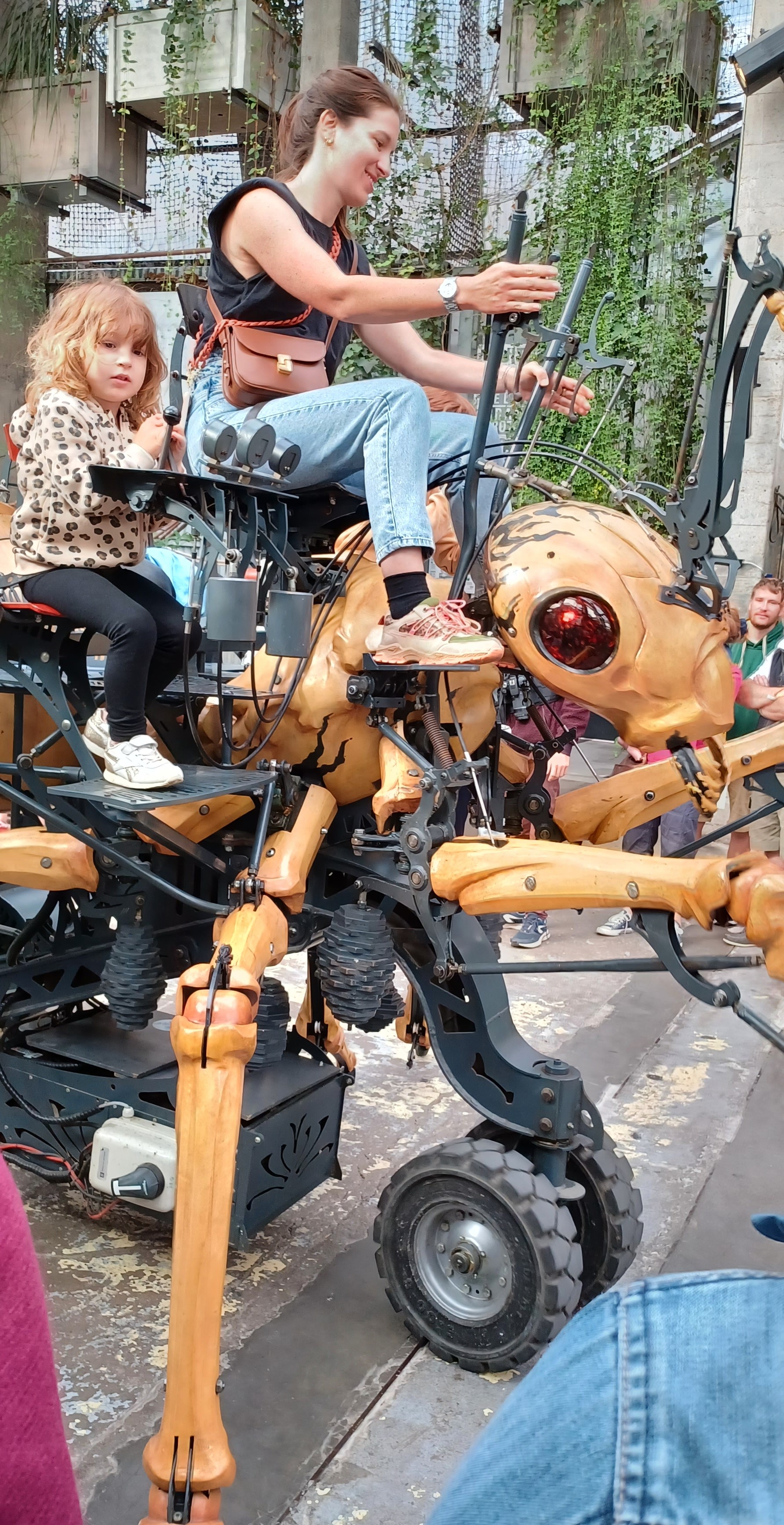 The Heron Tree is the third project that Les Machines is working on. There is a 1/10th model in front of the gift shop that you can walk on. The actual tree will be made of steel with plants rooted in the piping, and will measure 55 meters in diameter by 35 meters tall and is expected to weigh as much as a cargo ship. The branches will extend over the bike path that runs along the Loire River and will offer 1600 meters of walkable elevated gardens. There will be platforms in the top of the tree that will allow people to board the pair of herons that will fly an additional 15 meters above the tree. There are also plans to install hummingbirds on poles throughout the city. Estimated completion date is 2027.