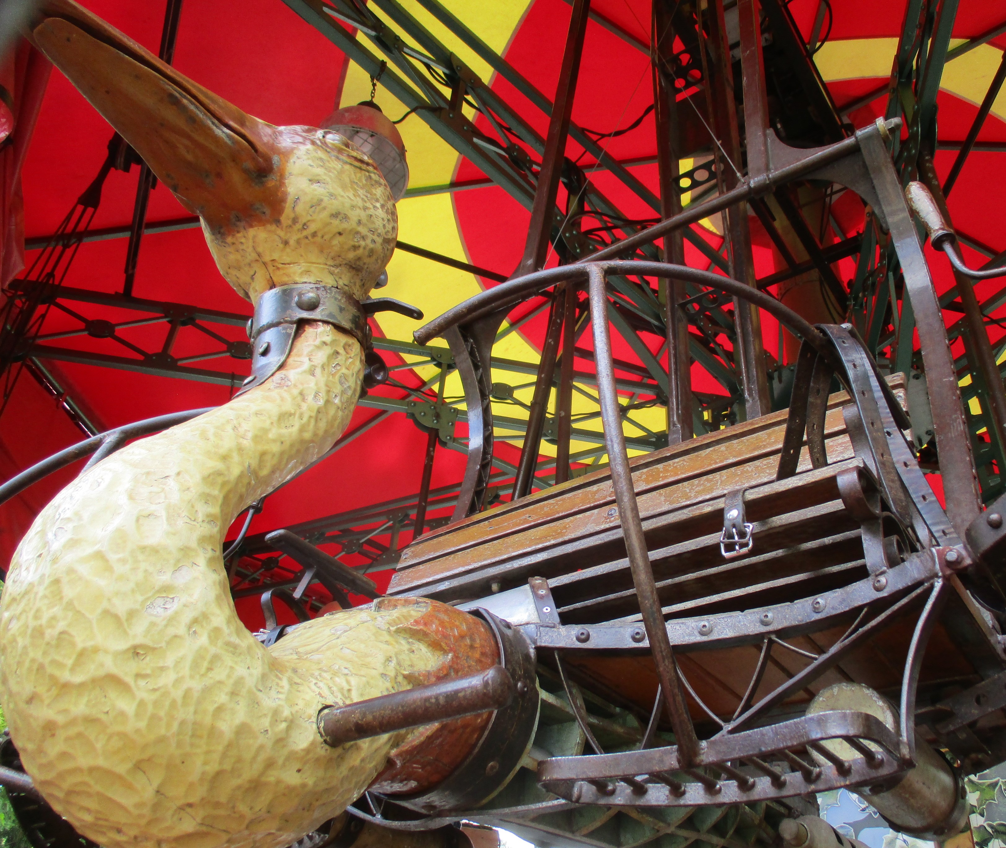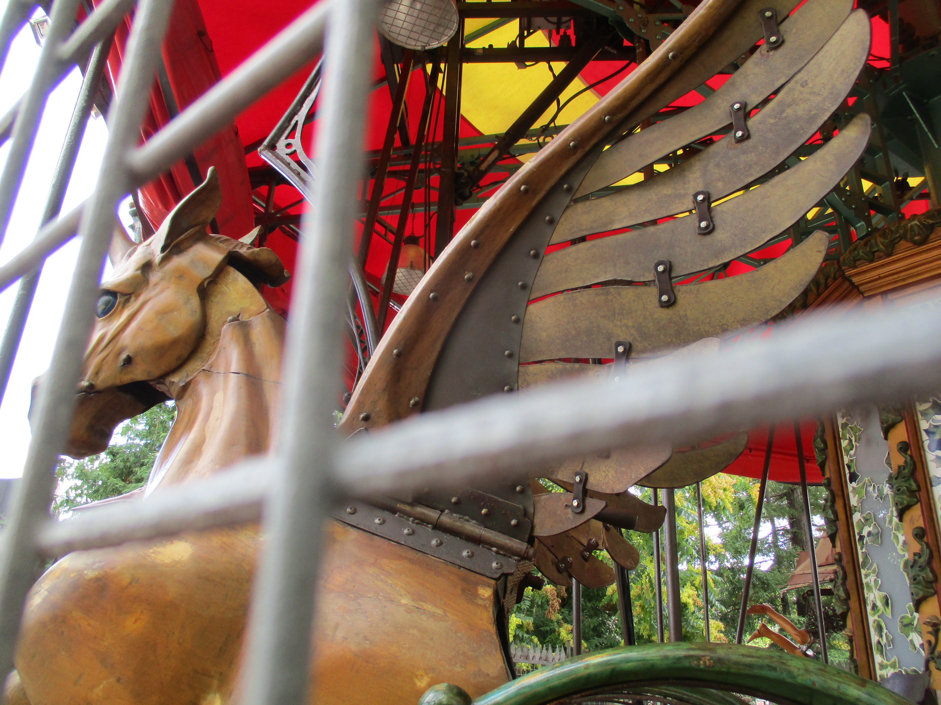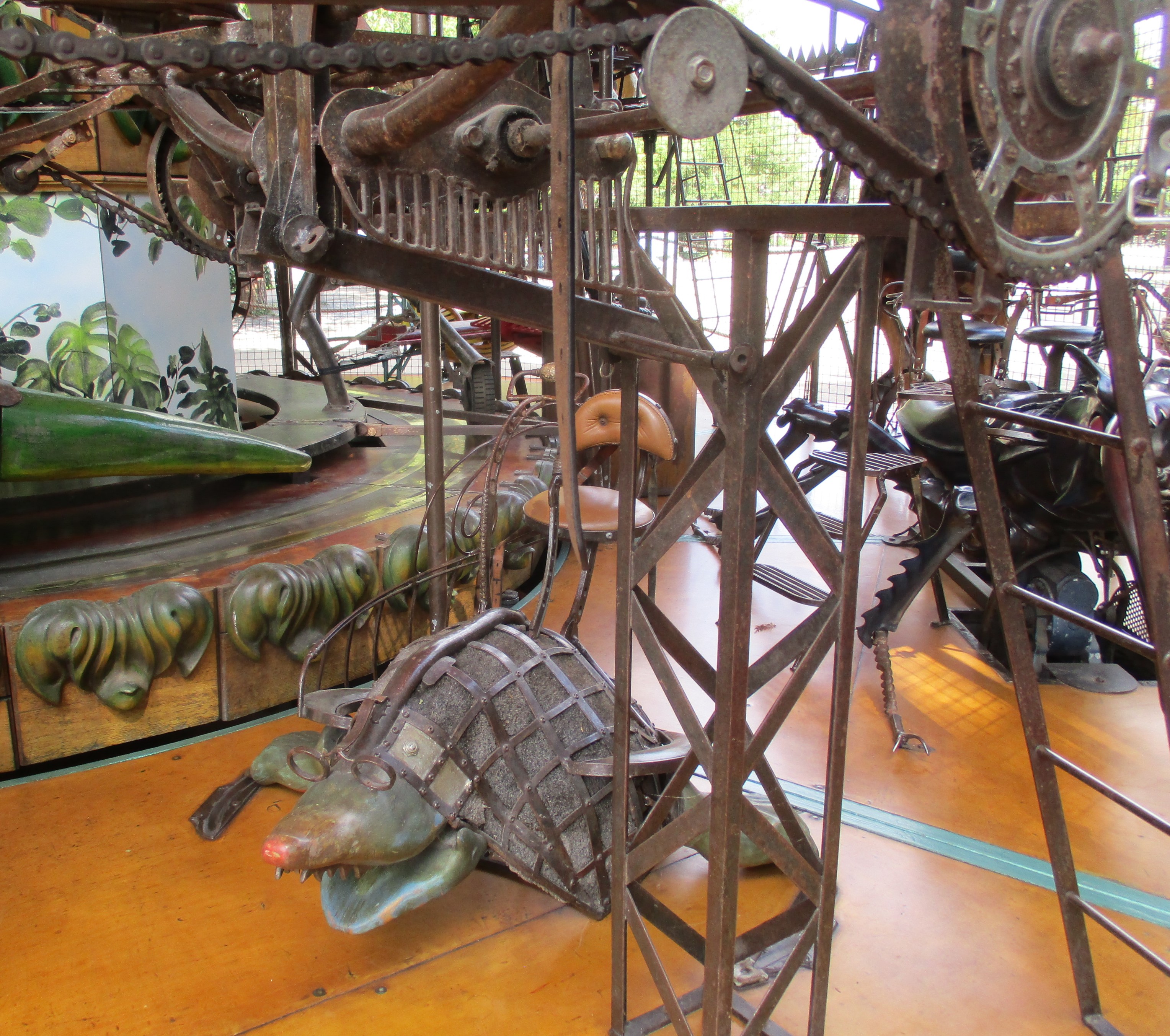 I check out a small single level carousel that is on the Les Machines campus. I don’t know if it is operational but it is very much in character with the rest of the mechanicals I have seen here: