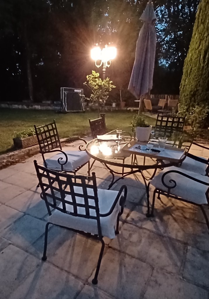 I sit on the terrace until well after dark, looking at the stars, listening to nightlife on the river, and look up just in time to see the owl make a low fly-by across the yard. It’s so quiet and balmy that I don’t want to go inside…