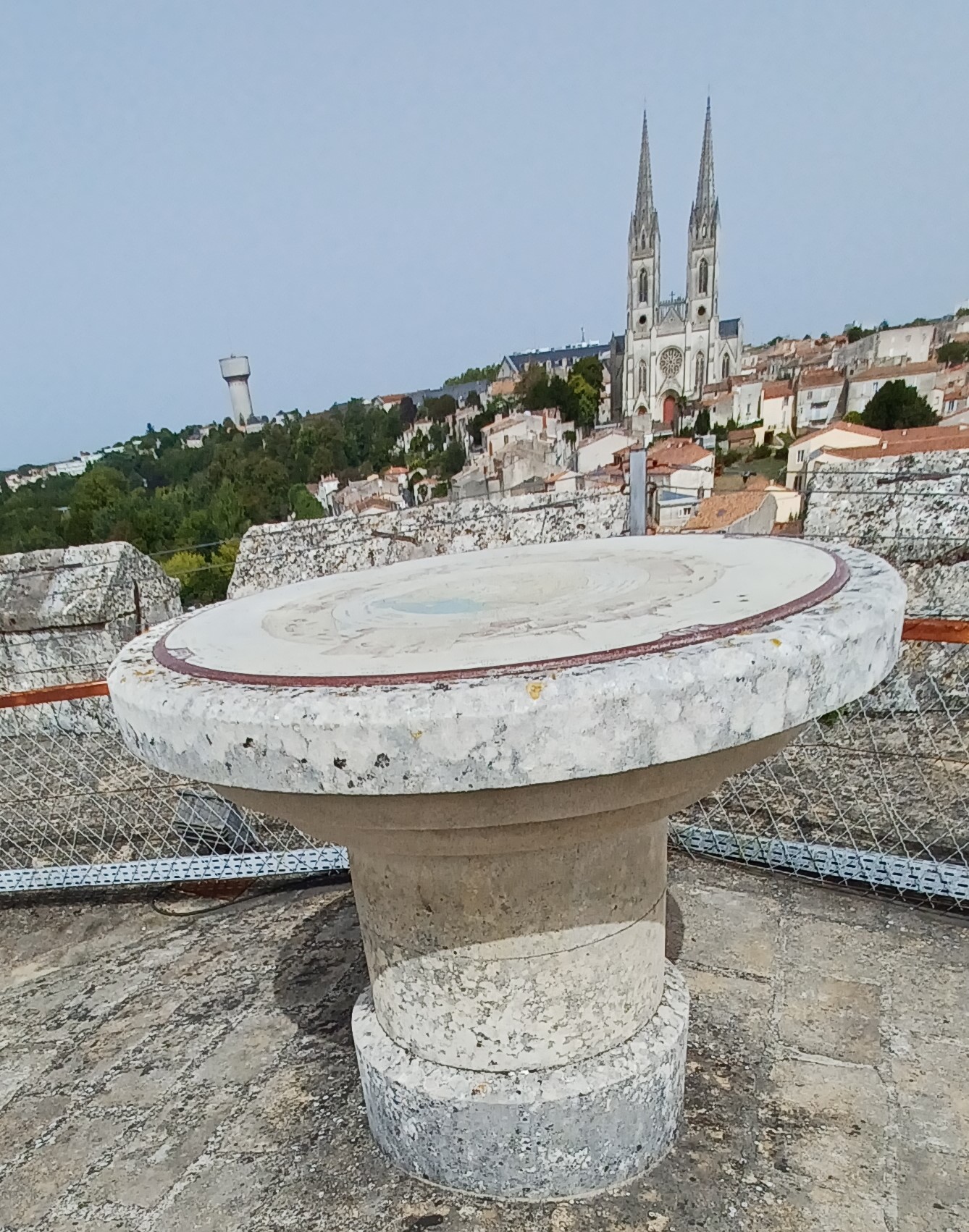 The view from the top is spectacular. I walk the ramparts and gaze out over the city, pretending to be Eleanor of Aquitaine although I’m pretty sure she had never been here. The last photo shows a thing I thought at first was a sundial, but turned out to be a map of the city.