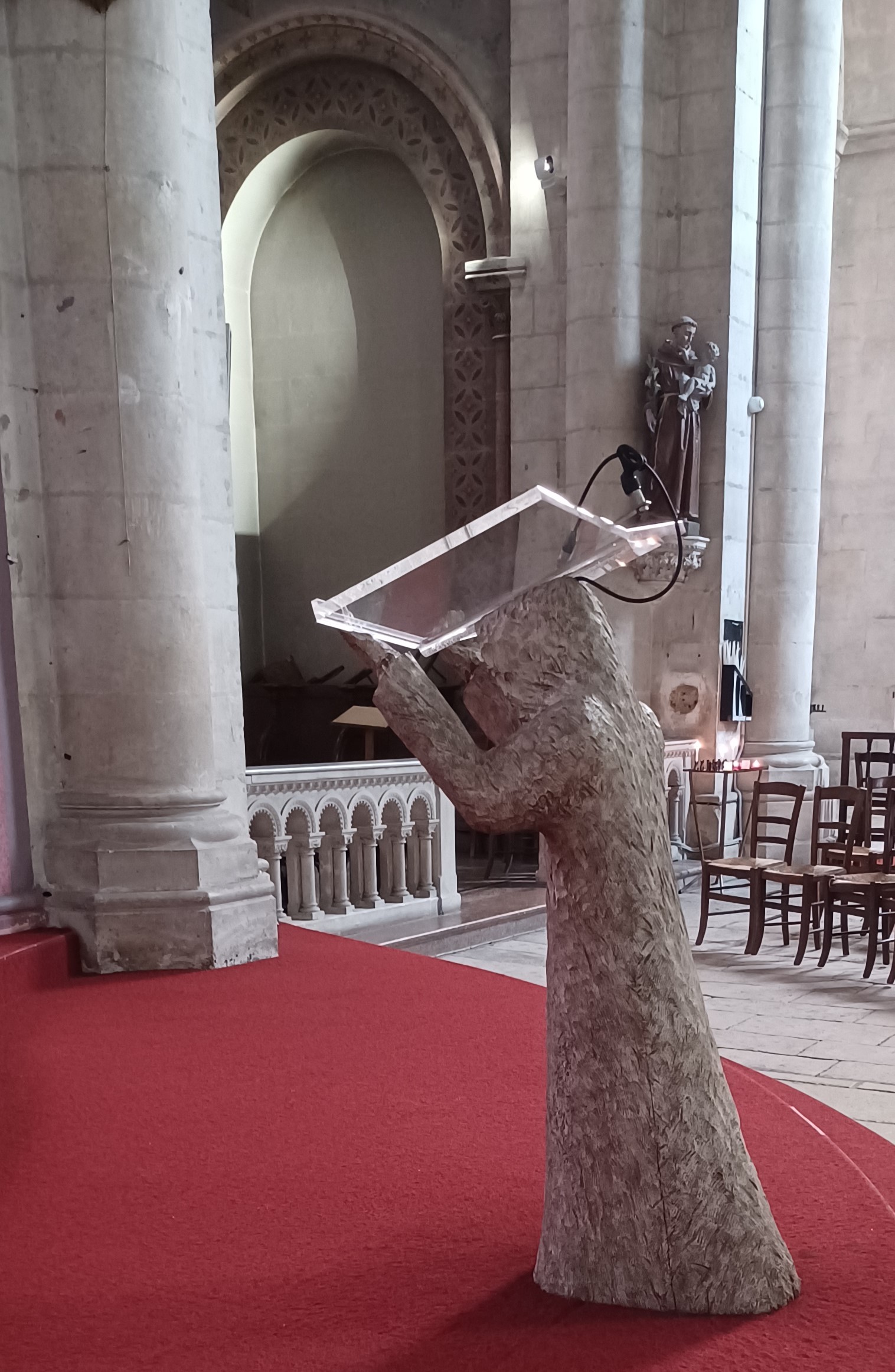 I like the stone monk that served as a modern-day Bible rest. I am struck by one of the ‘chapels’ along the side, which is no more than 4 wooden chairs and a votive table.