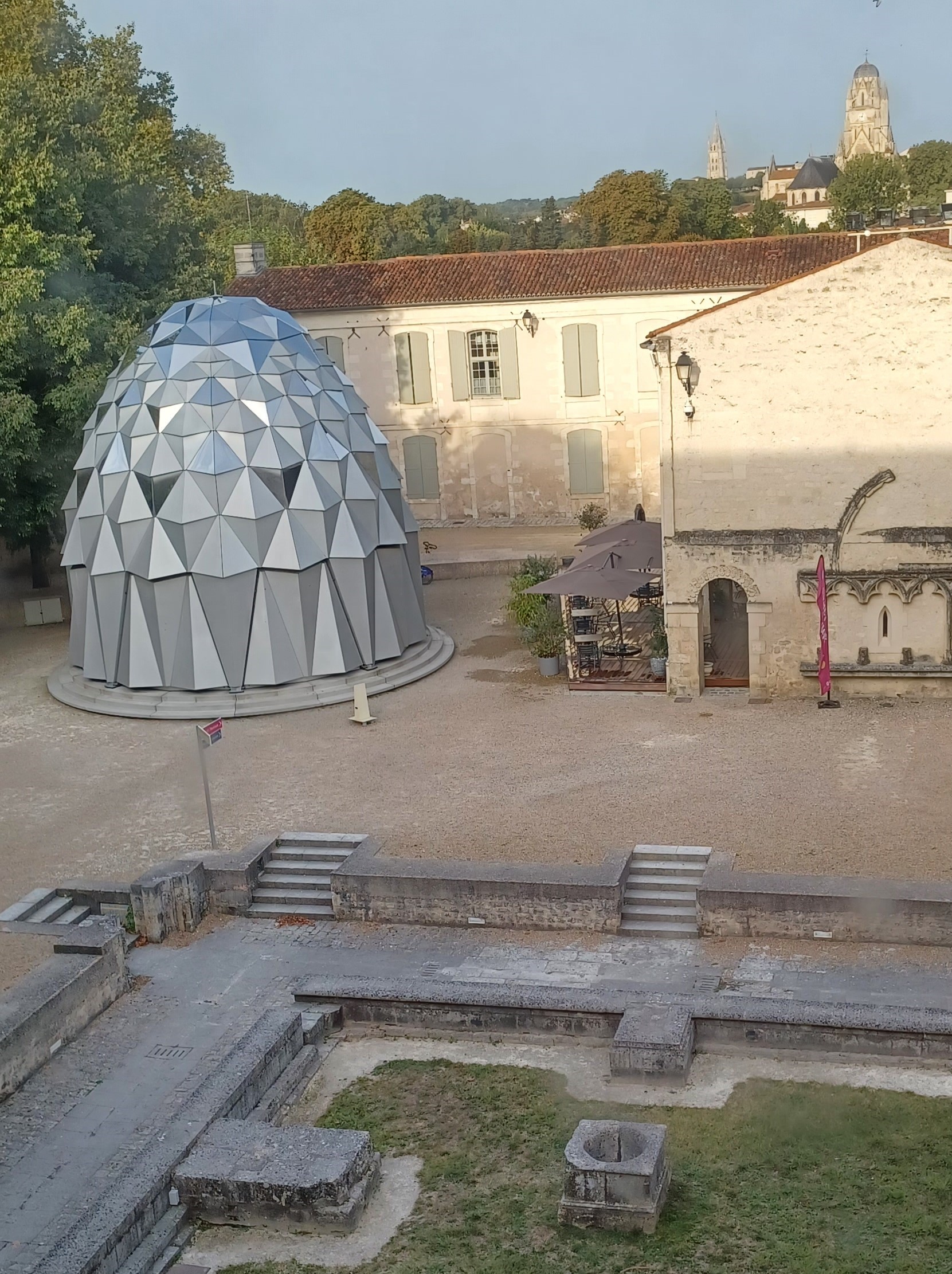 I write to you from my cell in the Abbaye aux Dames in Saintes, an 11th century convent now serving as a hotel and venue for concerts and artist residencies. I’m listening to a female choir, either in rehearsal or in concert. The acoustics are such that their voices fill the entire complex. In fact, sound carries so clearly here that I was compelled to carry my luggage rather than rolling it down the long, vaulted stone hallway to my room when I arrived. It’s a practice I would continue for the remainder of my trip when I didn’t want to disturb people with suitcase wheels hitting cobblestones.